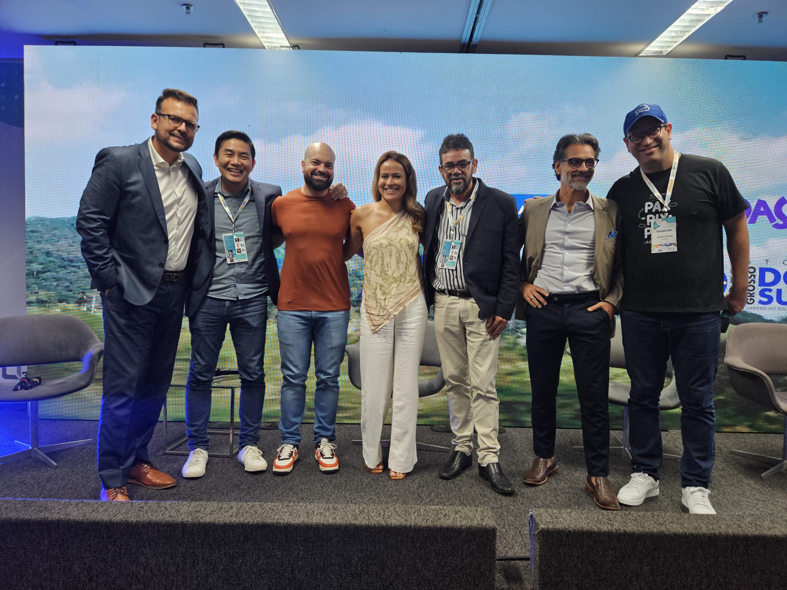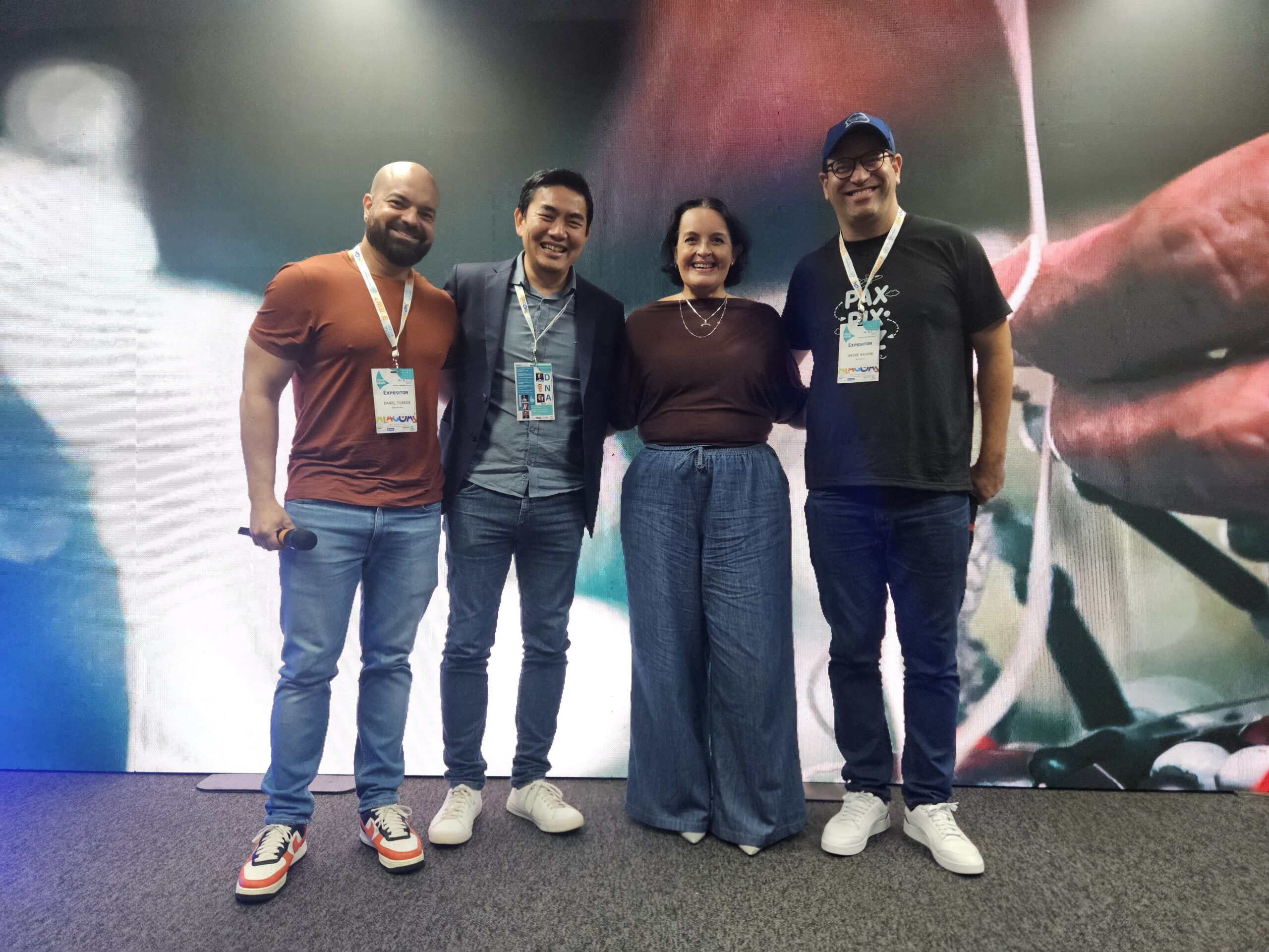 Estiveram no palco do auditório: Daniel Turbox, André Negrini e Thiago Akira, idealizadores do projeto DNA, e Saulo Boccanera, para mais trocas de conhecimentos.